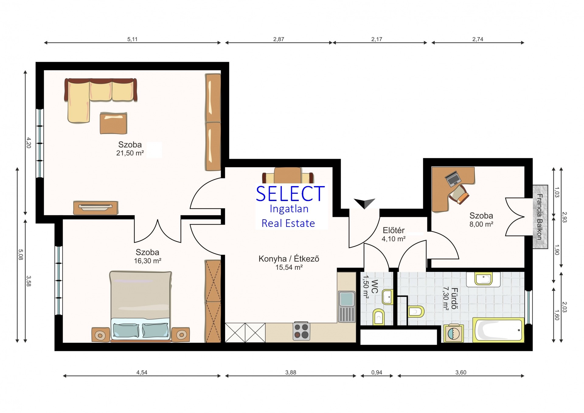 Csilli-villi Bauhaus lakás remek kényelemmel a Paulay/Liszt F. saroknál